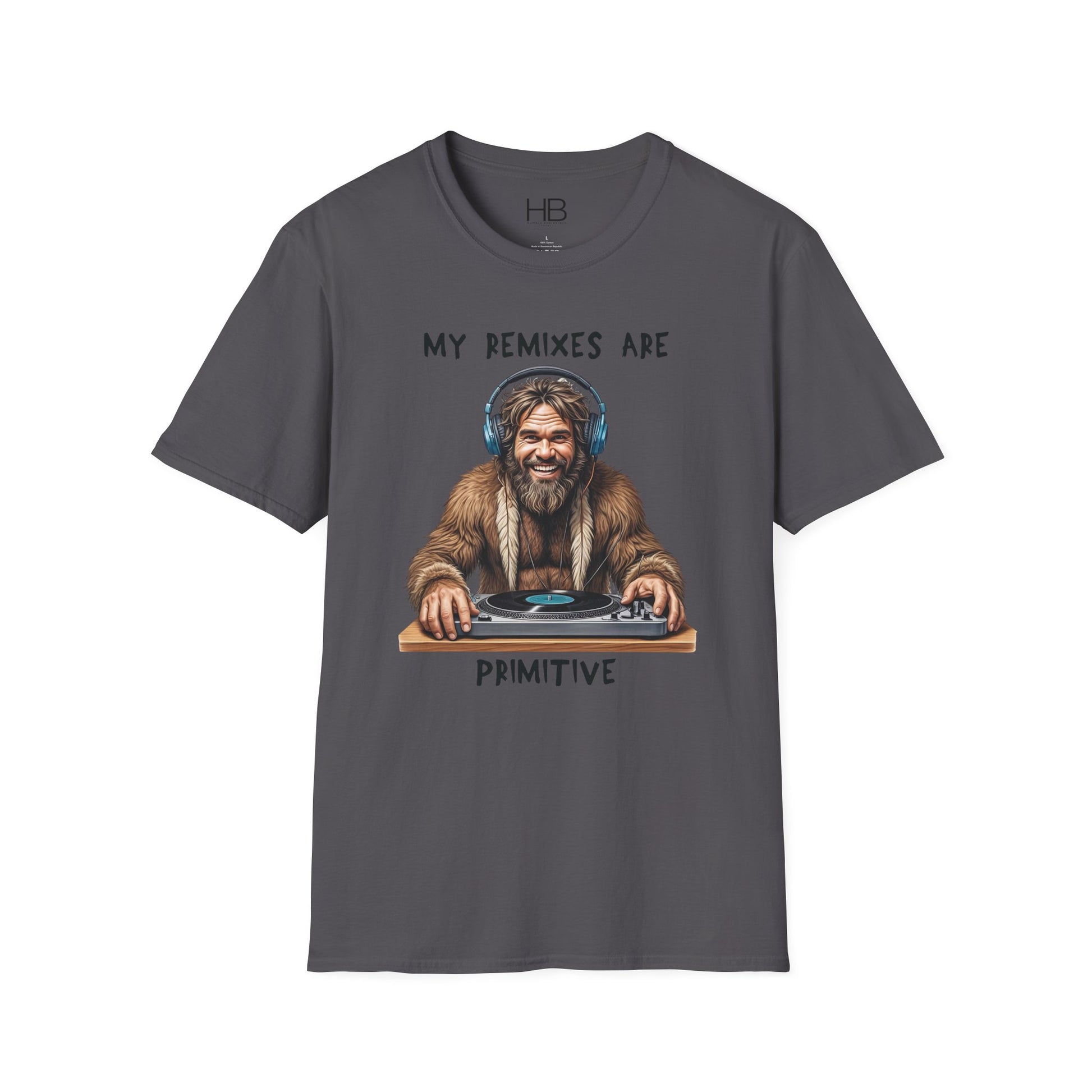 The Caveman DJ unisex soft-style t-shirt puts a new spin on casual comfort. Made from very soft materials, this tee is 100% cotton for solid colors. Heather colors and sports grey include polyester. The shoulders have twill tape for improved durability. There are no side seams. The collar is made with ribbed knitting to prevent curling damage.