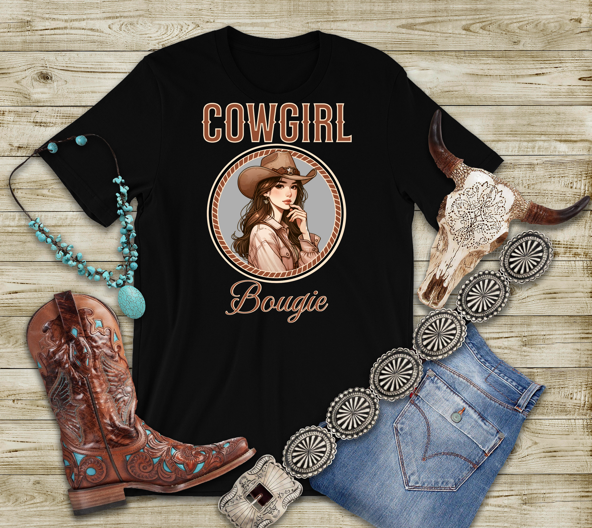 The Cowgirl Bougie unisex soft-style t-shirt puts a new spin on casual comfort. Made from very soft materials, this tee is 100% cotton for solid colors. Heather colors and sports grey include polyester. The shoulders have twill tape for improved durability. There are no side seams. The collar is made with ribbed knitting to prevent curling damage.