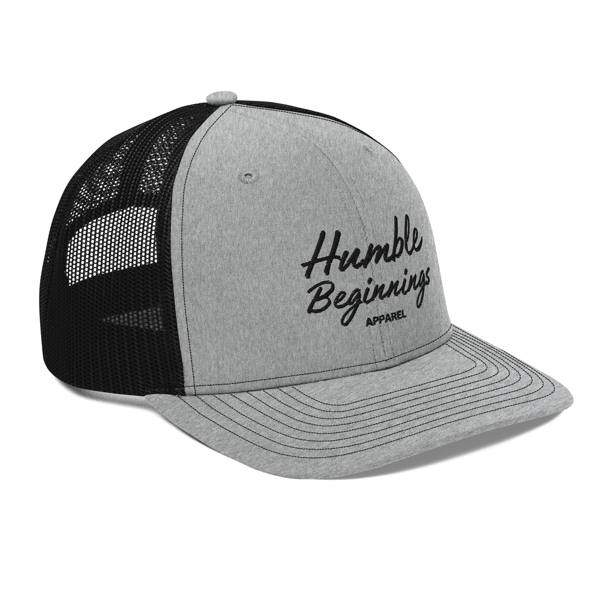 Complete your outfit with an embroidered Humble Beginnings trucker cap—combine it with a sports tee, slacks, and comfy shoes. It has a classic structured fit, adjustable plastic snapback, and a curved visor that matches its underbill.