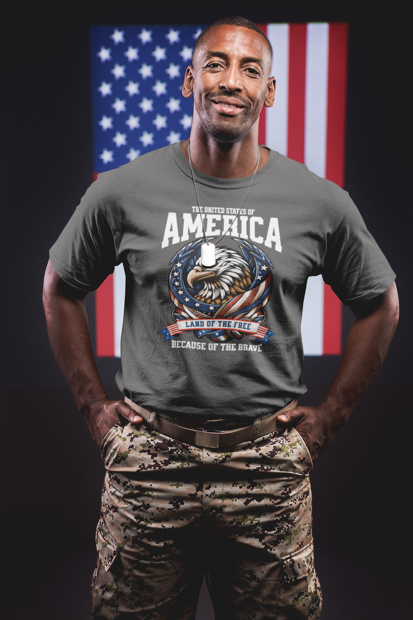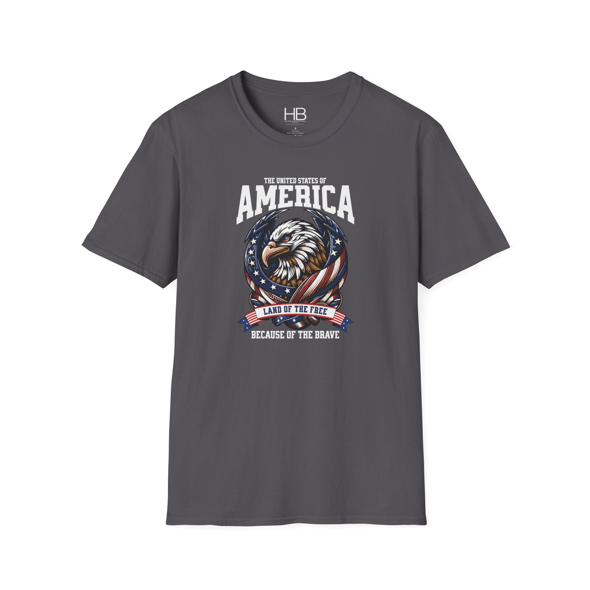 The Land Of The Free unisex soft-style t-shirt puts a new spin on casual comfort. Made from very soft materials, this tee is 100% cotton for solid colors. Heather colors and sports grey include polyester. The shoulders have twill tape for improved durability. There are no side seams. The collar is made with ribbed knitting to prevent curling damage.